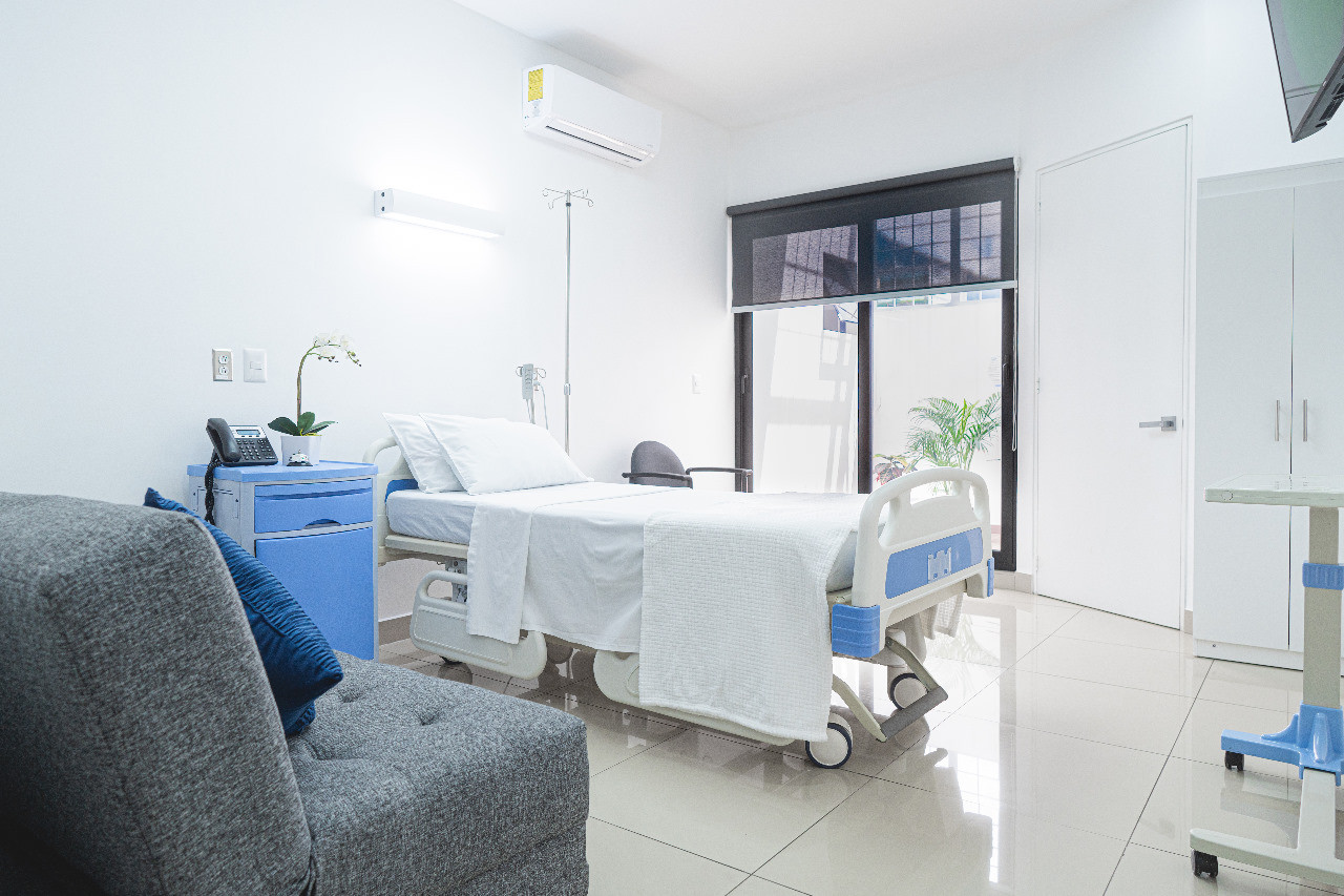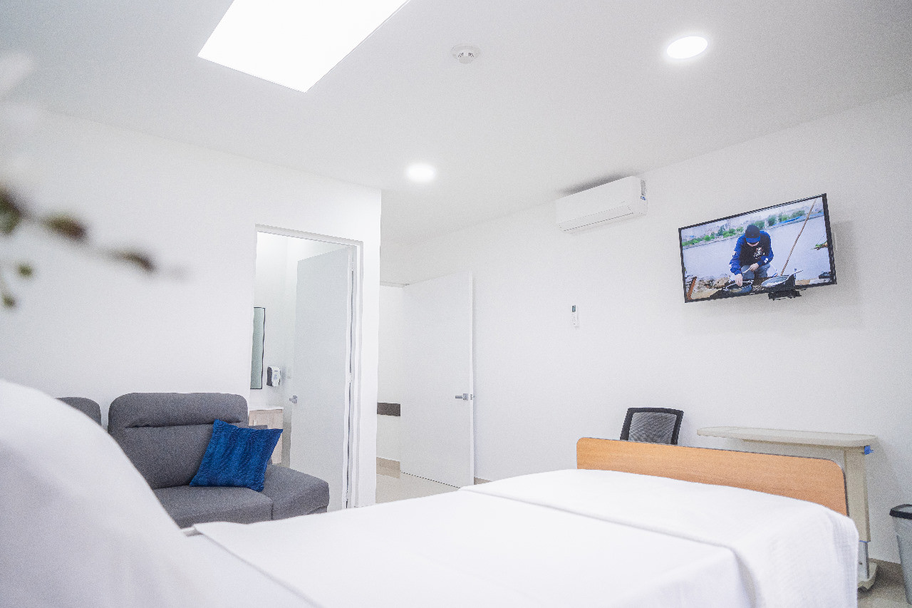 - Área hospitalaria, con amplias habitaciones, servicio de internet inalámbrico y tv con cable.