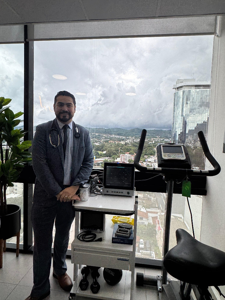 - 2018 a la fecha Cardiólogo clínico, ecocardiografista y especialista en rehabilitación cardiaca, Escalón Medical Center (práctica privada).