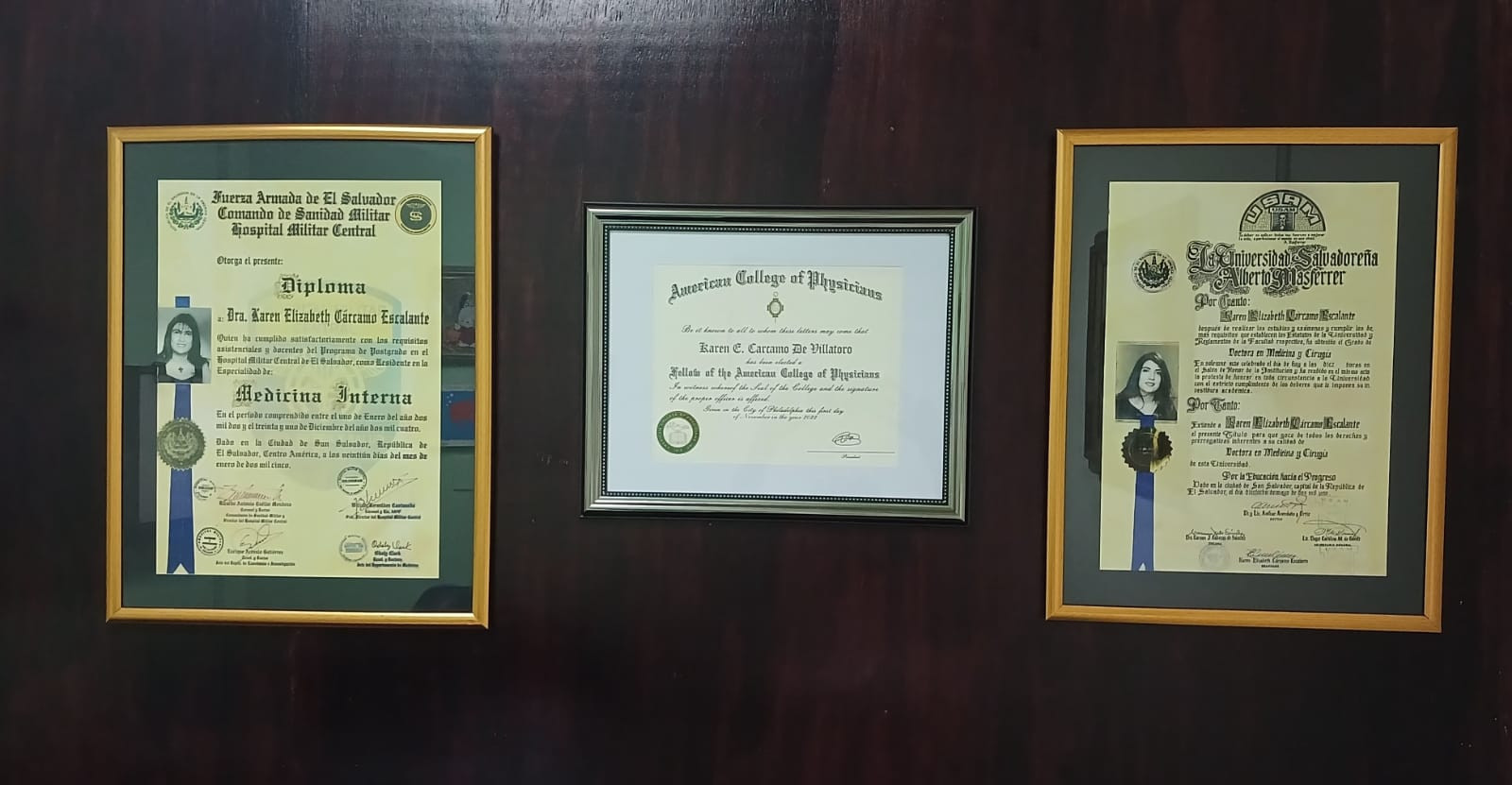 - Miembro del Colegio Médico de El Salvador