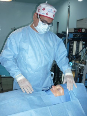 Doctor en quirófano preparándose para cirugía